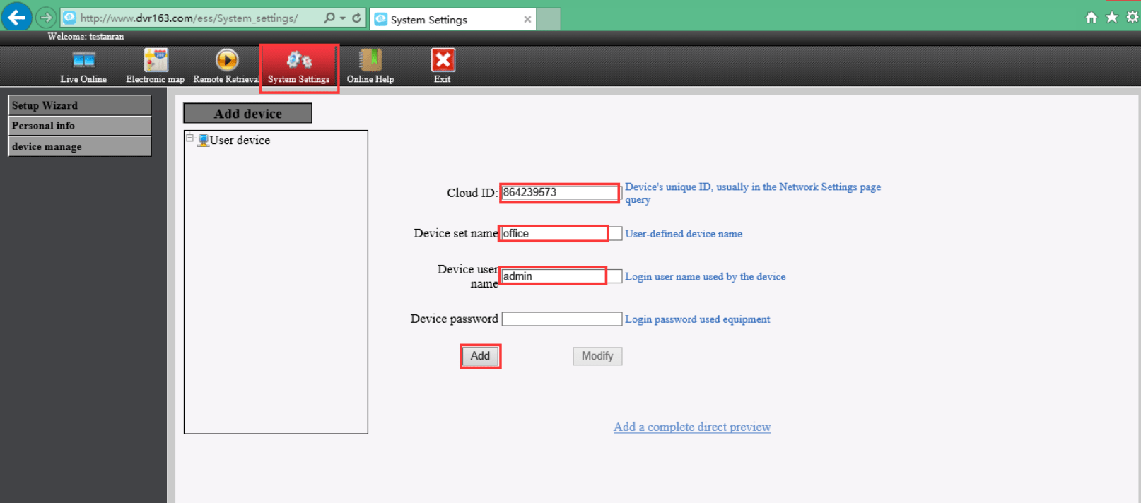 Device password: This is NVR systemās default password, if you hadn’t changed it, it should be blank. If you have modified the password, please enter the password which you had set.