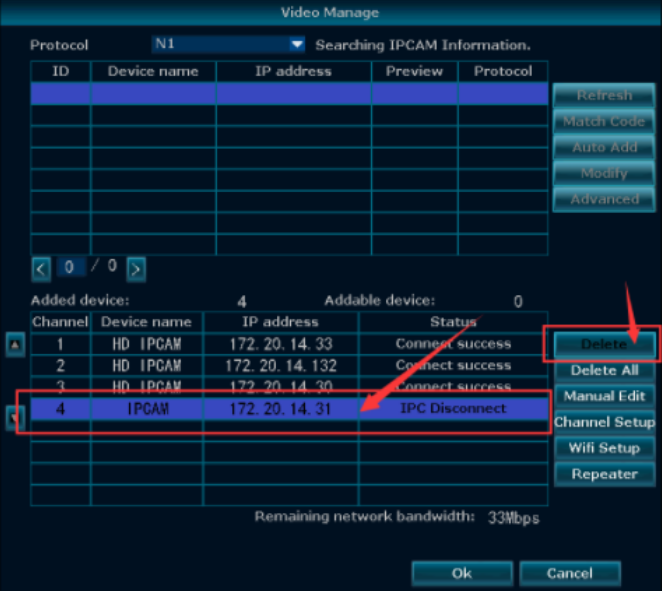 2. Please go to “Video Manage” and delete the “IP disconnected” camera from below.
