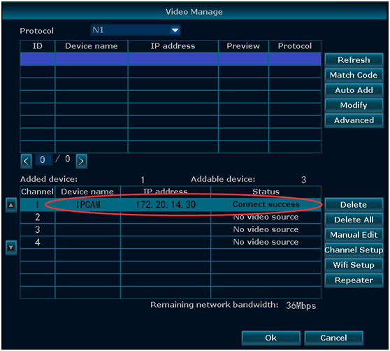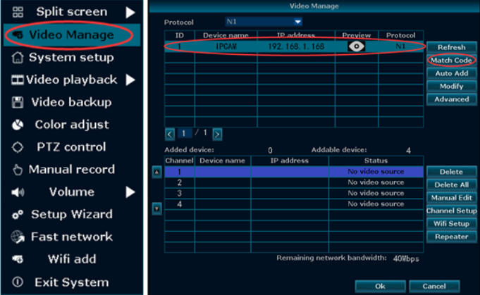 Before match code please delete the corresponding channel Ā to spare a channel out for a new camera, then you can match and add new camera into the channel.