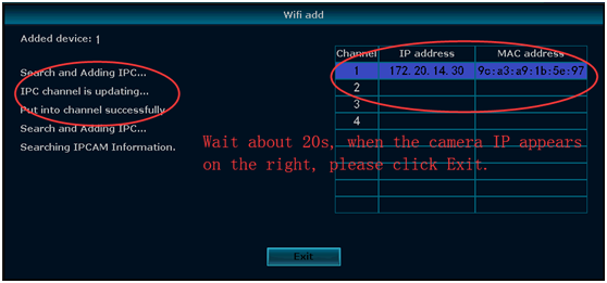 6) Wait for about 30s and the camera connect success (camera’s IP 172.20.14.x)