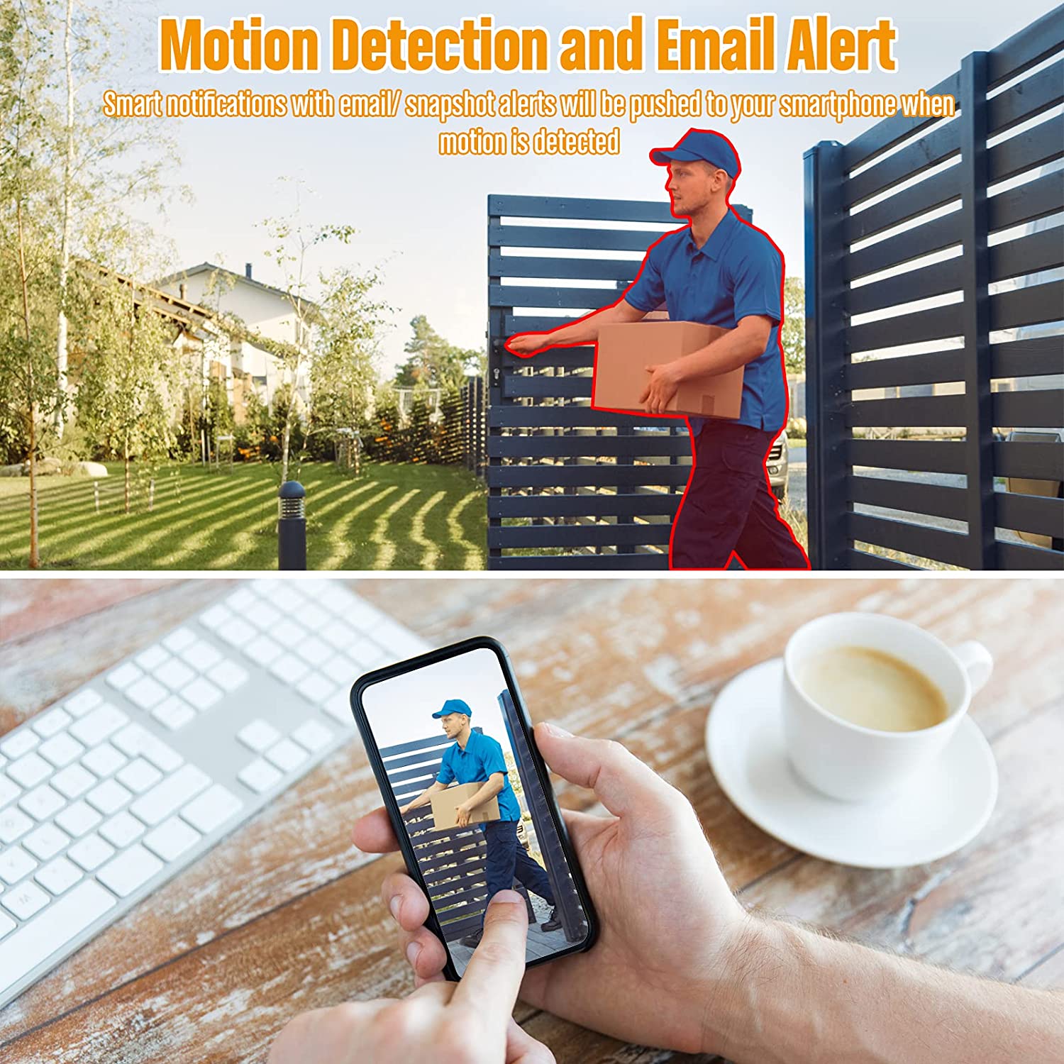 【Easy to set up & Remote access】True plug and play, this WiFi security camera for home is easy to install and set up. Free “ARCCTV” APP is available for iOS and Android, can remotely view the camera at anytime anywhere when you are not at home.